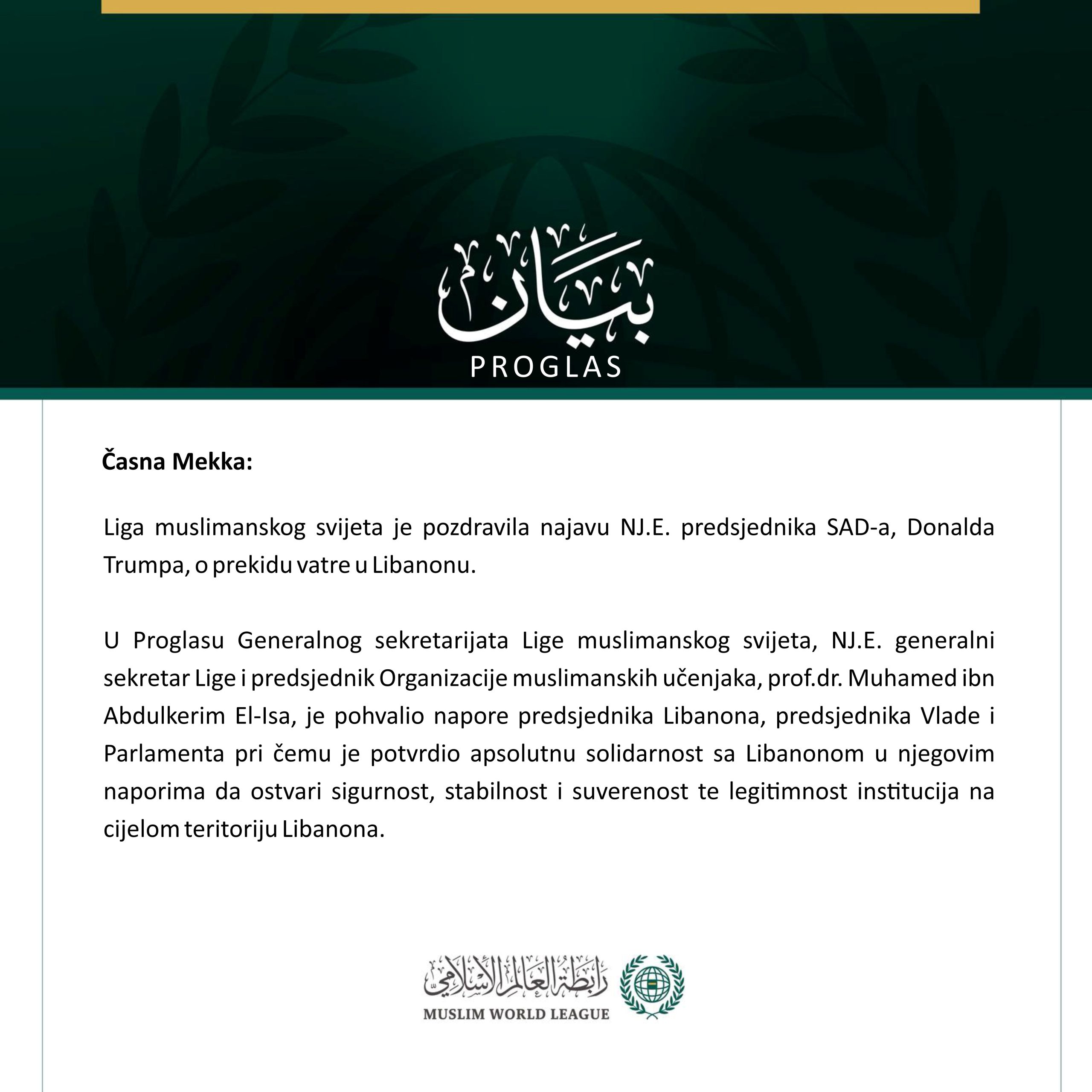 U čast posjete NJ.E. generalnog sekretara Lige muslimanskog svijeta i predsjednika Organizacije muslimanskih učenjaka, prof.dr. Muhameda El-Isaa, Savezno australsko vijeće…
